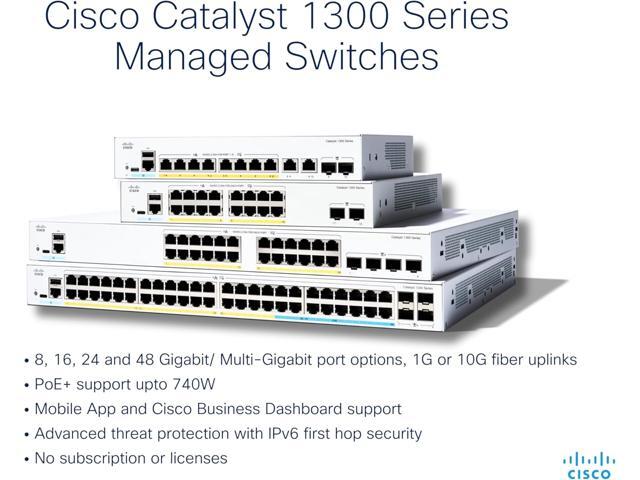 Cisco Catalyst 1300 C1300-24XT Layer 3 Switch, 20 Ports - Manageable - Gigabit Ethernet, 10 Gigabit Ethernet - 10GBase-T, 10GBase-X - 3 Layer Supported
