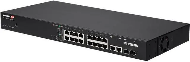 HIGHSPEED BACKPLANE: 36Gbps backplane bandwidth + forwarding rate of 17.8Mpps. The GS-5216PLC provides maximum available bandwidth without delay. Ports: 24x RJ45 Gigabit, 4x RF45/SFP Gigabit combo