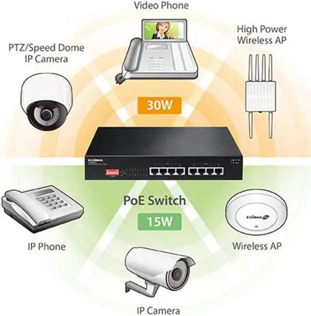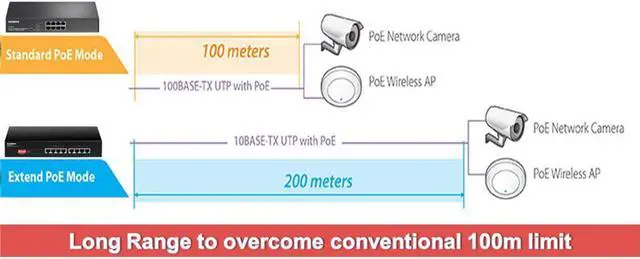 The "Extend" mode features 30-watt PoE transmit distance of 200m at speed of 10Mbps