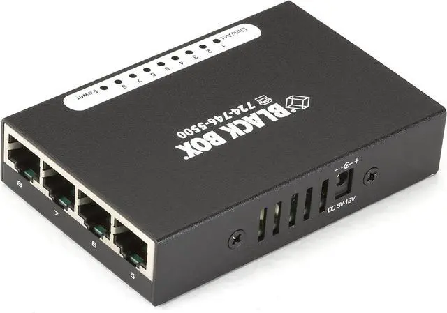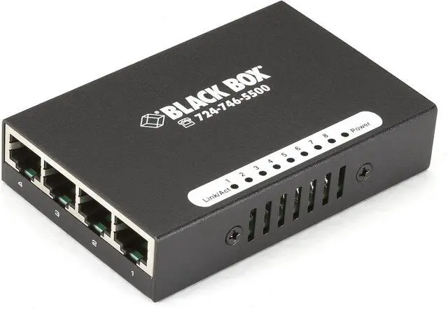 The compact USB-Powered 10100 Switch is an easy way to quickly add eight 10-100-Mbps Ethernet ports to your network. Because it's USB powered, you can plug it into the nearest PC-an advantage anywhere power outlets are tight. The switch offers autosensing 10-100-Mbps ports that autonegotiate half-full-duplex. All ports feature Auto MDIMDI-X, so there's no need for cross-pinned cables-just plug it in and you're ready to go. There's no easier way to set up a quick workgroup. Plus, the switch is tiny enough to tuck neatly behind a PC. Manufacturer: Black Box Corporation. Manufacturer Part Number: LBS008A. Brand Name: Black Box. Product Model: LBS008A. Product Name: USB-Powered 10100 8-Port Switch. Product Type: Ethernet Switch. [InterfacesPorts] Total Number of Network Ports: 8. Token Ring Port: No. LRE Port: No. Uplink Port: No. Bypass: No. Modular: No. Management Port: No. Stack Port: No. Number of Network (RJ-45) Ports: 8. PortExpansion Slot Details: 8 x Fast Ethernet Network. [Media Performance] Media Type Supported: Twisted Pair. Ethernet Technology: Fast Ethernet. Network Technology: 10100Base-TX. [Network Communication] Layer Supported: 2. [Management Protocols] Manageable: No. [Power Description] PoE (RJ-45) Port: No. Input Voltage: 120 V AC. Power Source: Power Supply. USB. [Physical Characteristics] Form Factor: Desktop. Height: 0.8". Width: 2.4". Depth: 3.1". [Miscellaneous] Package Contents: USB-Powered 10100 8-Port Switch Power Cable Power Supply . Certifications Standards: TAA CE IEEE Standards: 802.3 802.3u 802.3x . Green Compliant: Yes. Green Compliance CertificateAuthority: RoHS. WEEE. [Warranty] Limited Warranty: 1 Year.