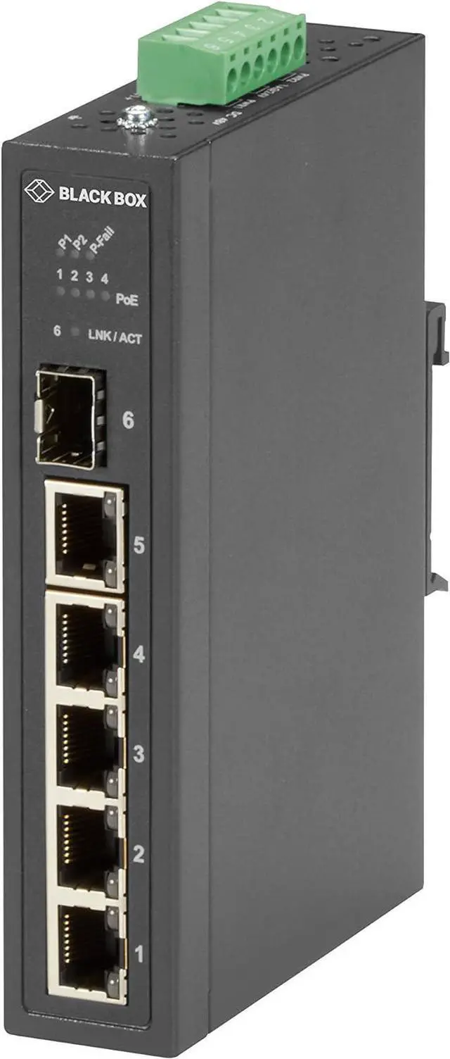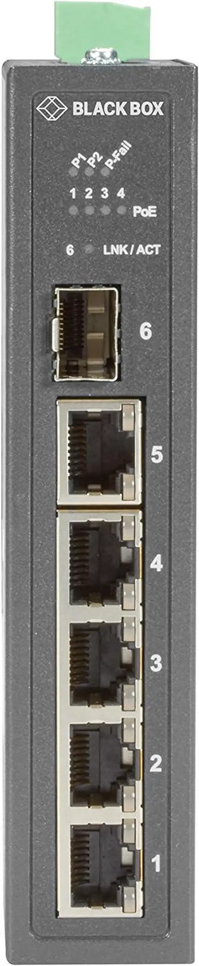 Provides four Fast Ethernet PoE/PoE+ ports, one Gigabit copper port and one Gigabit SFP port.