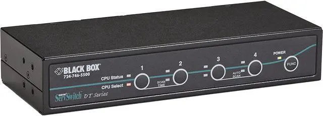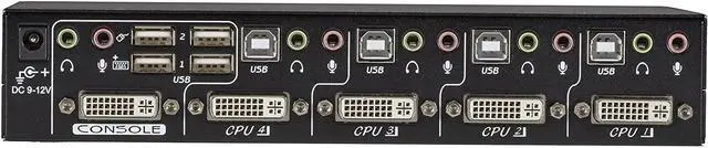 The DT Series Desktop KVM Switch supports up to 4 DVI-I and USB Computers or Servers and allows the user to easily switch between them using front push buttons. The DT Series KVM supports resolutions up to 1920x1200.