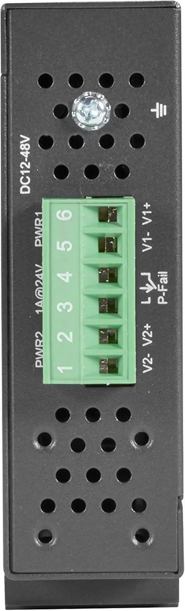 Supports redundant 12-48 VDC input power and a P-Fail relay.