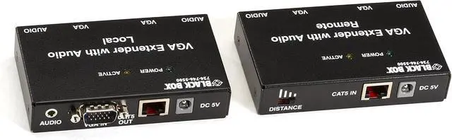 Black Box Vga Extender Kit With Audio, 2-port Local, 2-port Remote - 1 Input Device - 4 Output Device - 500 Ft Range - 2 X Network (rj-45) - 1 X Vga In - 4 X Vga Out - Xga - 1024 X 768 - Category 6