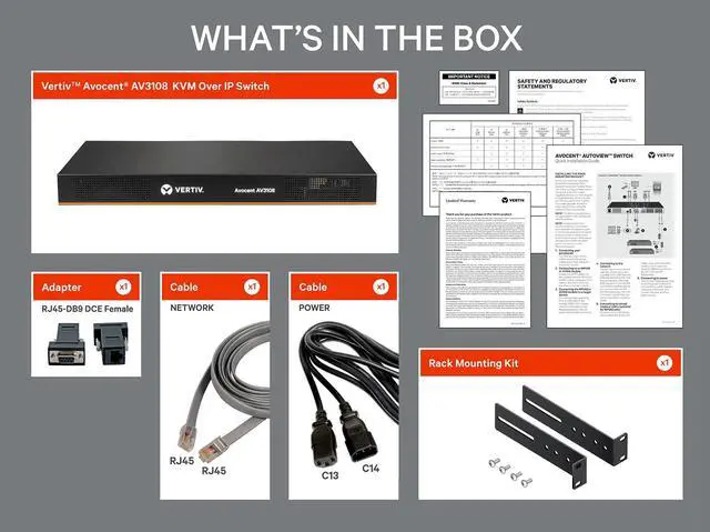 The Vertiv Avocent Autoview 3000 (AV3000) KVM over IP Switches provide local and remote management and control of up to 16 servers from a single console. Supporting up to two local users and one remote user, this series of rackmount KVM switches is flexible, secure and easy to use. The Vertiv Avocent AV3000 KVM over IP Switches deliver enterprise-class performance at a small business price. The series features virtual media for enabling out-of-band file transfers and OS patch deployments, as well as support for two-factor authentication using smart cards or Common Access Cards (CAC) readers. Session sharing allows for diagnostic or multi-user viewing from anywhere in the world. These solutions also include local USB peripheral support, support LDAP user authentication, and AES encryption.