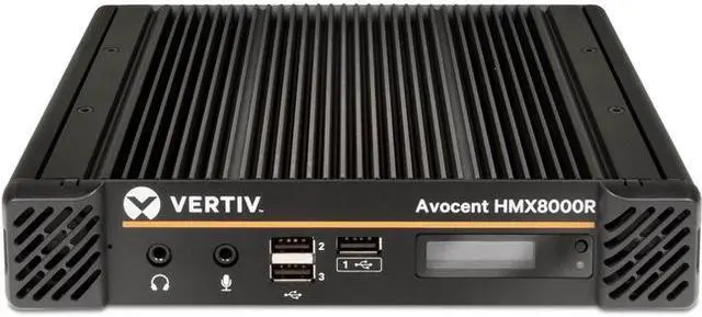 The Vertiv Avocent HMX8000R - IP KVM Receiver (HMX8000R) is a high performance KVM extender that offers 4K video over a single fiber connection, along with audio and USB. Dual head 4K can be achieved with additional fiber connection. It delivers pixel-perfect, color accurate picture quality at 4K 60Hz and USB 2.0 for fast switching. The 1U receiver enables users to locate critical computing hardware in secure, temperature-controlled environment, away from the user work station to maintain component integrity. It provides access to system computers via a standard IP infrastructure network, allowing users the ability to share computing resources. System control is managed from a single access point through confirmed verification tools. This KVM system is ideal for demanding applications such as media, control rooms and collaborative environments. It is used in broadcasting, post production and many other industries where high resolution and zero latency are required.