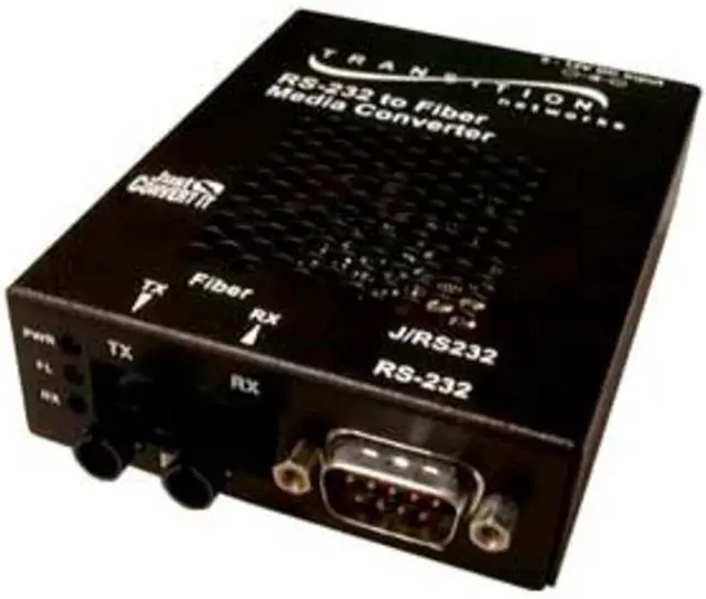 Transition Network's Just Convert-IT serial RS232 to Fiber Media Converter is an inexpensive, no frills way to extend the distance between serial connections with the use of fiber optic cable. This converter supports full or half-duplex data transmission at speeds up to 120Kb/s. Unit and Port LEDs allow for quick status information on the converter.