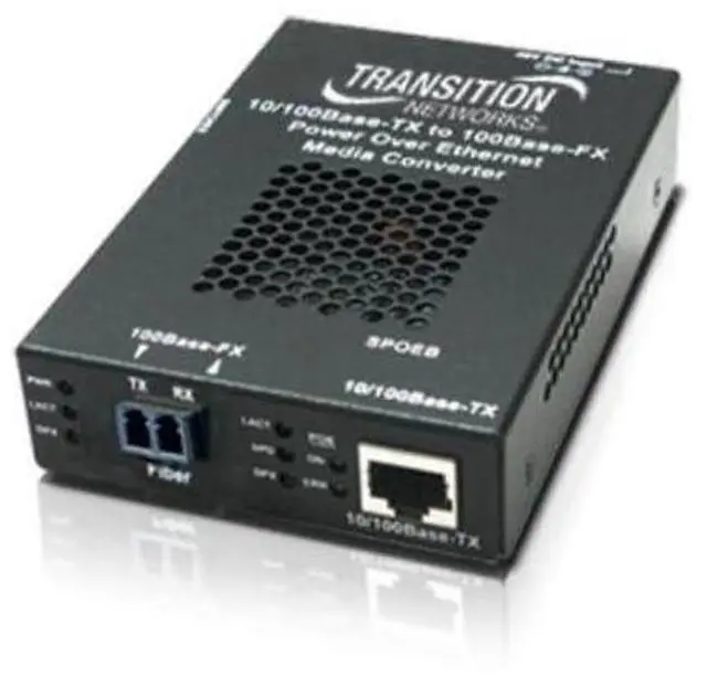 Transition Networks SPOEB1039-105-NA Stand-Alone Power Over Ethernet Media Converter - Fiber media converter - 100Mb LAN - 100Base-FX, 100Base-TX - RJ-45 / LC multi-mode - up to 1.2 miles - 1300 nm