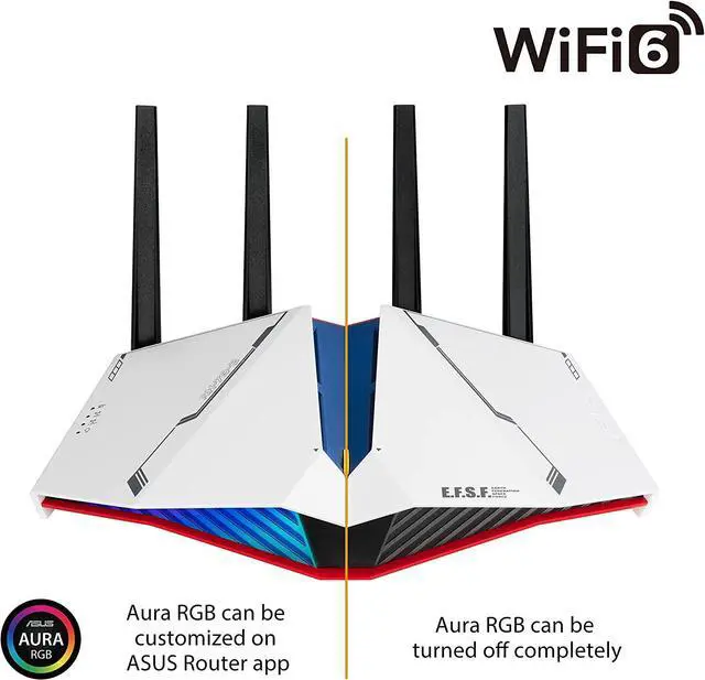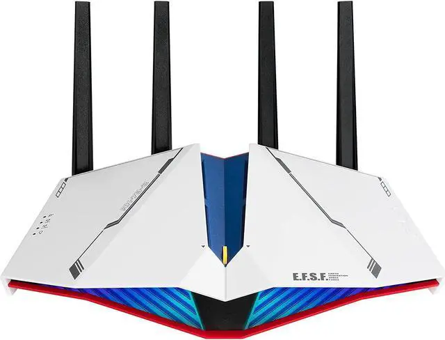 Inspired by the RX-78-2 GUNDAM and boasting Earth Federation Space Force branding, the ASUS RT-AX82U GUNDAM Edition dual-band WiFi 6 router delivers fast and smooth gaming connections. Along with ultrafast WiFi speeds of up to 5400 Mbps, the RT-AX82U is packed with advanced technologies such as Mobile Game mode, which ensures lag-free, low-latency mobile gaming experiences.