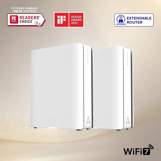 Ultimate AiMesh powered by AI delivers robust backhaul connections and seamless connectivity for all devices, covering up to 8,000 sq.ft. (2pk), and a feature-rich whole-home network that scales with any ASUS extendable routers.