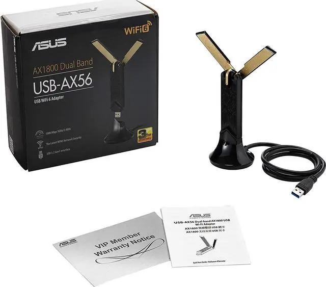 The WiFi 6 standard delivers efficient connectivity that meets the demands of the growing number of connected personal and IoT devices. The USB-AX56 USB adapter gives your laptop or PC an instant plug-and-play upgrade to WiFi 6. Disclaimer: Actual data throughput and WiFi coverage will vary from network conditions and environmental factors, including the volume of network traffic, building material and construction, and network overhead, result in lower actual data throughput and wireless coverage.