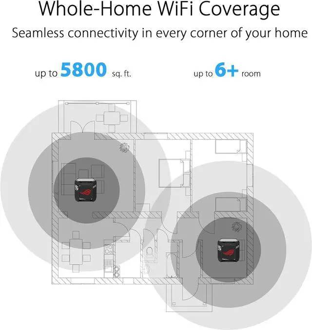 High-Efficiency tri-band WiFi 6 performance with dedicated backhaul provides ultrafast speeds of up to 10,000 Mbps to cover up to 5,800 square feet.