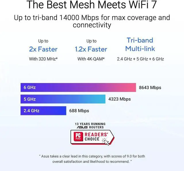 Tri-band WiFi 7 speeds up to 14 Gbps with 6 GHz WiFi, MLO, and 4K-QAM