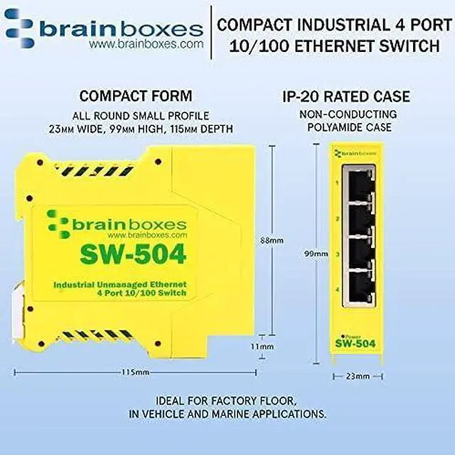 Industrial temperature range of -30°C to +80°C (-22°F to 176°F) and dual-input redundant power supply with wide voltage range means it can be powered from USB or on the 24 V factory floor. Power terminal is removable with numbered pins for easy wiring. Power consumption is optimized based on the status of the link device. No software required. It is ideal for factory floor, in vehicle and marine applications.