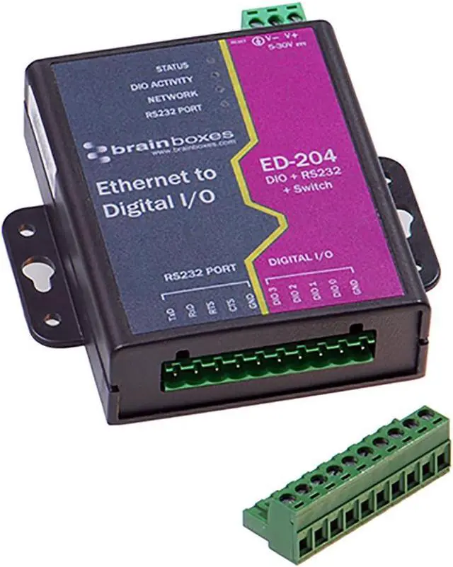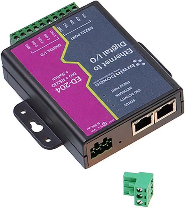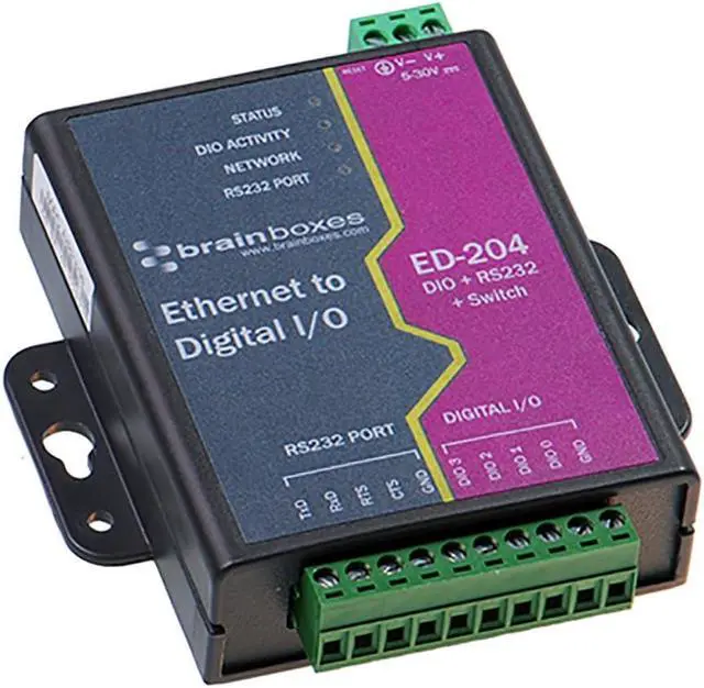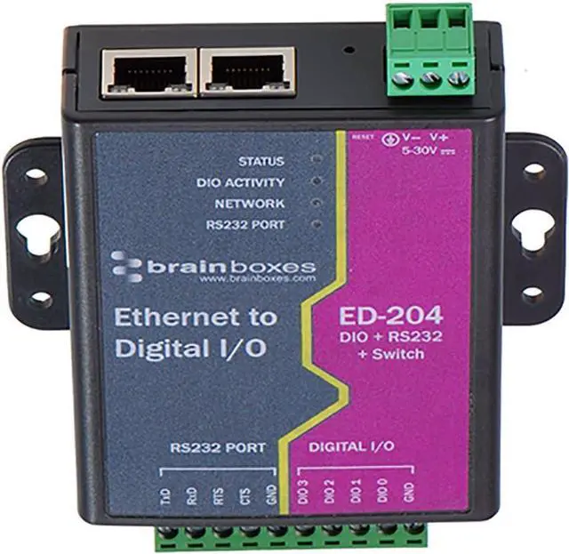 4 I/O Channels + RS232 Serial Port + Ethernet Switch Full Ethernet to Serial Device Server: Up to 1 MBaud Industrial Process Control & Automation Intuitive Software Interface Operating Temp: -10C to +60C / +14F to +140F DIN Rail & Wall Mountable Housing