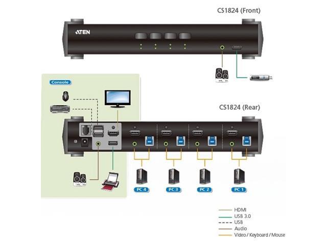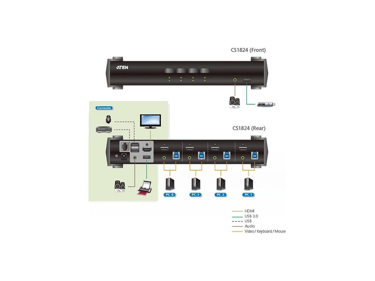 Aten 4-Port USB 3.0 4K HDMI KVMP Switch CS1824