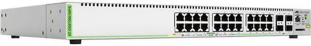 Allied Telesis CentreCOM GS970M Series switches provide an excellent access solution for todays networks, supporting Gigabit to the desktop for maximum performance. The Power over Ethernet Plus (PoE+) models provide an ideal solution for connecting and remotely powering wireless access points, IP video surveillance cameras, and IP phones. The GS970M models feature 8, 16 or 24 Gigabit ports, and 2 or 4 SFP uplinks, for secure connectivity at the network edge.