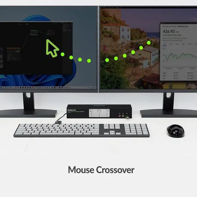 Mouse crossover switcing - Under the Matrix Mode, the mouse cursor can across two monitors for instant switching between two computers