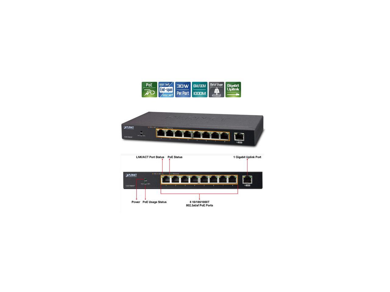 Planet GSD-908HP 8-Port 10/100/1000T 802.3at PoE + 1-Port Gigabit Desktop Switch