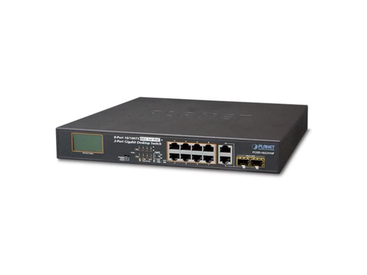 PLANET Technology - FGSD-1022VHP - 8-Port 10/100TX 802.3at PoE + 2-Port Gigabit TP/SFP combo Desktop Switch with LCD PoE