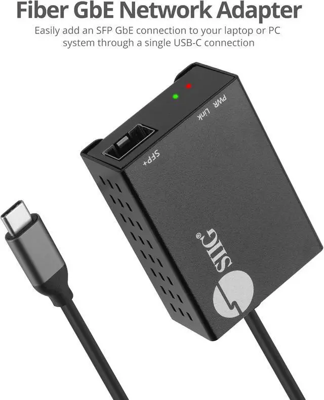 SFP Fiber Support - Converts USB Type-C to MSA Compliant SFP modules (1000Base-SX/LX) slot, provides a Gigabit Ethernet (1000 Mbps) optical network connection for portable laptops or tablets, or systems without expansion slots