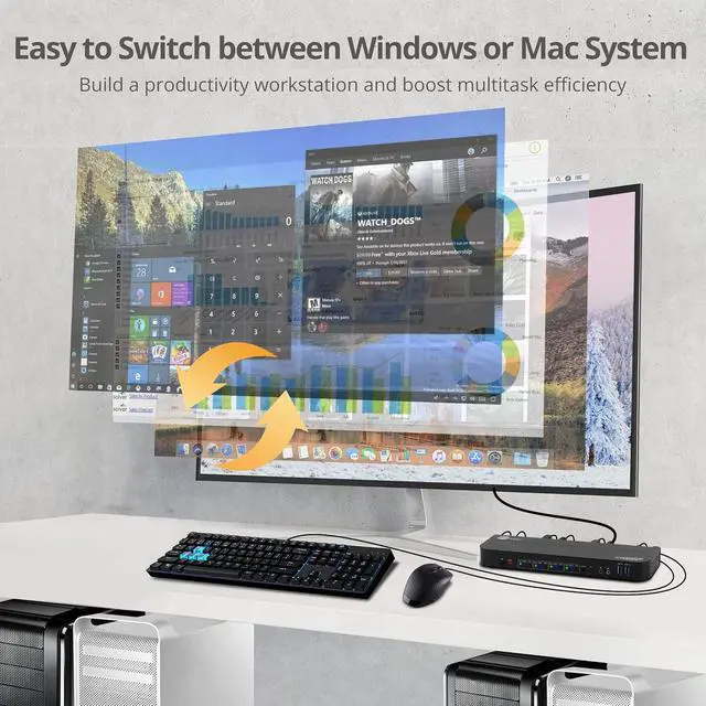 Wide Compatibility - The DisplayPort KVM Switch works compatible with Windows 11, 10, 8.x and 7, and macOS 10.13 or later. The KVM switcher is designed to be plug and play and no driver installation is required.