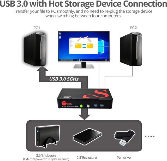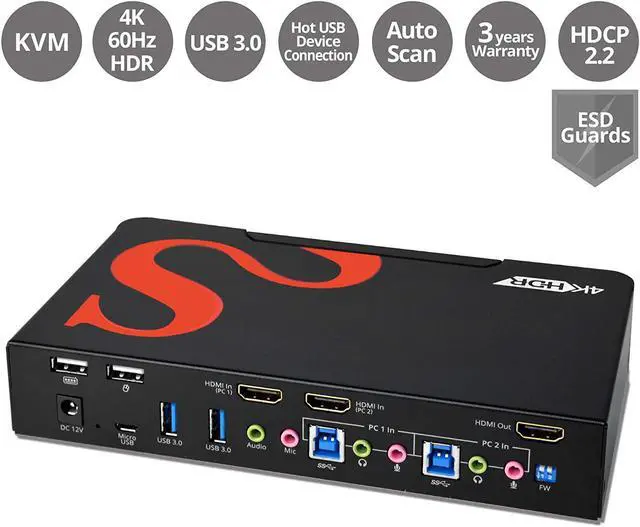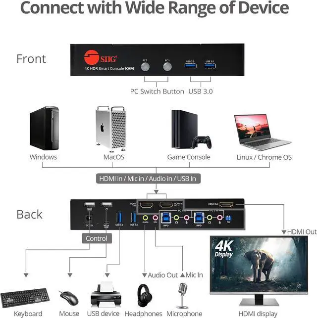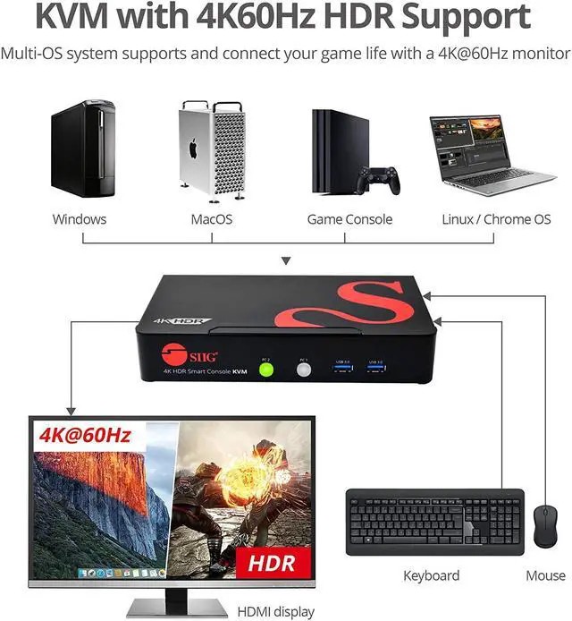 2 computer compatibility: Control two computers with HDMI 4K 60Hz video System via one set of keyboard and Mouse for sharing such as between windows and Mac