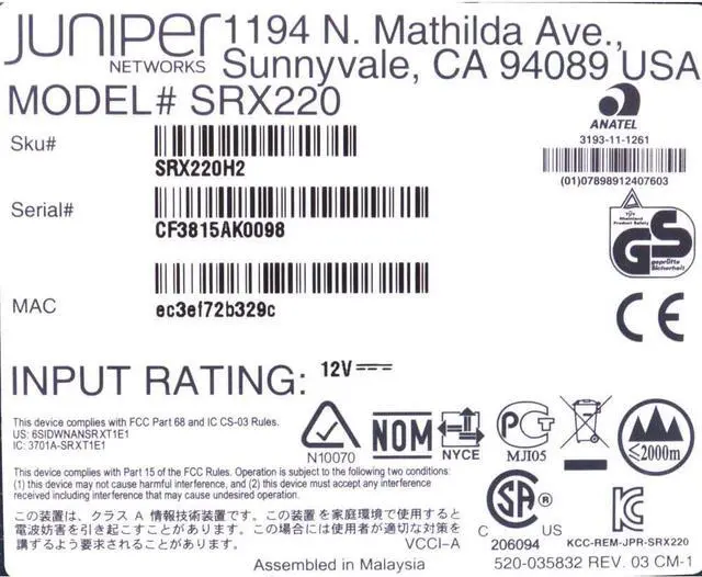 Juniper SRX220 Services Gateway - 8 Ports - Management Port - 2 Slots - Gigabit Ethernet - 1U - Rac