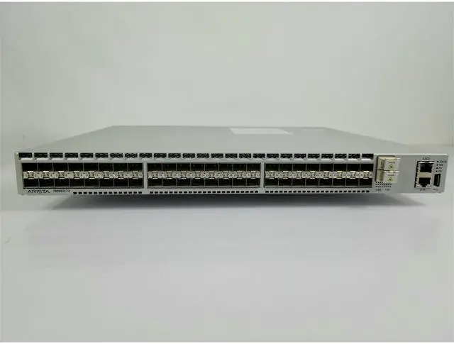 The Arista DCS-7050SX-72-F switch features 48 x 10 Gigabit Ethernet SFP+ uplinks and 6 x 40 Gigabit (through 2x MXP) uplinks. The chassis includes 2x PWR-500AC-F powers and 4x FAN-7000-F front-to-rear airflow. Consult with a representative for further information or configuration assistance.