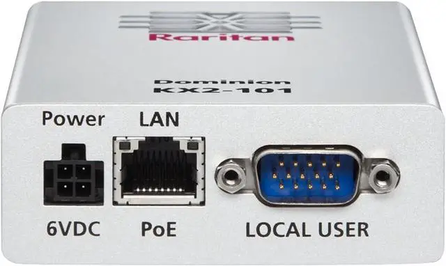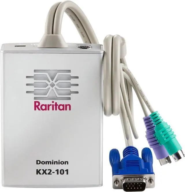 Secure single-port KVM-over-IP switch with integrated local port access and virtual media. Includes PS2/USB/VGA KVM cable, AC/DC multi-country power adapter, and rack-mount kit