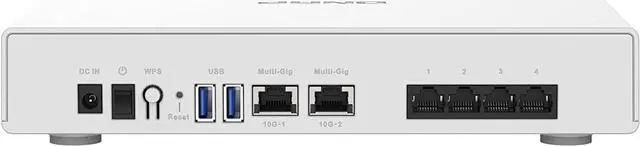 The QHora-301W pairs an enterprise-grade Qualcomm Quad-core 2.2 GHz processor with 1GB RAM, providing support for Wi-Fi 6 (802.11ax) and up to 3600Mb/s dual-band (2.4GHz & 5GHz) transfer speeds. With two 10GbE ports and four Gigabit ports, the QHora-301W enables flexible LAN/WAN deployment and optimized wired network performance.