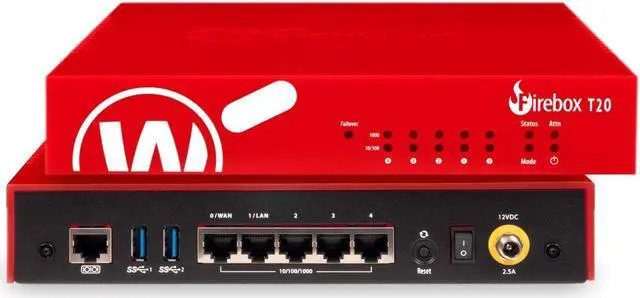 WatchGuard Firebox T20 protects small office, home office and retail environments with complete enterprise-level network security that is easy to deploy and manage. Offering optional web filtering, intrusion prevention, antivirus and more. It can be used as a stand-alone solution or centrally managed from corporate headquarters. Flexible management tools and WatchGuards RapidDeploy technology enable administrators to quickly set up the Firebox T20 at remote locations so businesses can ensure that they protect where they connect. Firebox T20 provides 1.7 Gbps firewall throughput and five 1-Gigabit Ethernet ports. WatchGuard Dimension provides visibility into network activity and security events at no additional cost. Wireless models are available.