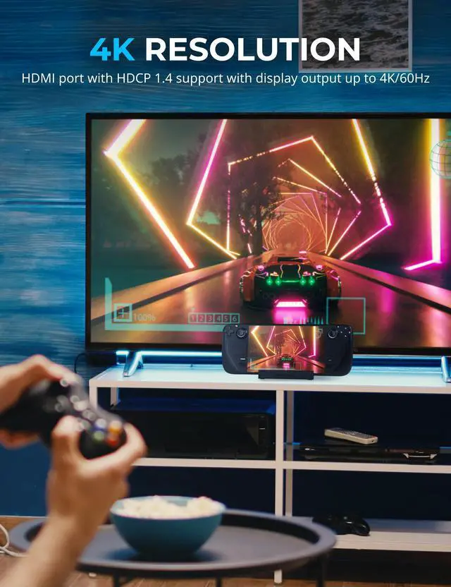 4K Clarity: A single HDMI 2.0 port with HDCP 1.4 support allows you to output up to 4K/60Hz on a secondary display. Play games on the big screen or just get more space to work for your Deck and other devices with DisplayPort Alternate Mode (DP Alt) support.