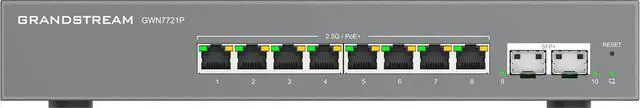 GWN7721P ports 1-8 support PoE and provide smart power control to support dynamic PoE/PoE+ power allocation per port