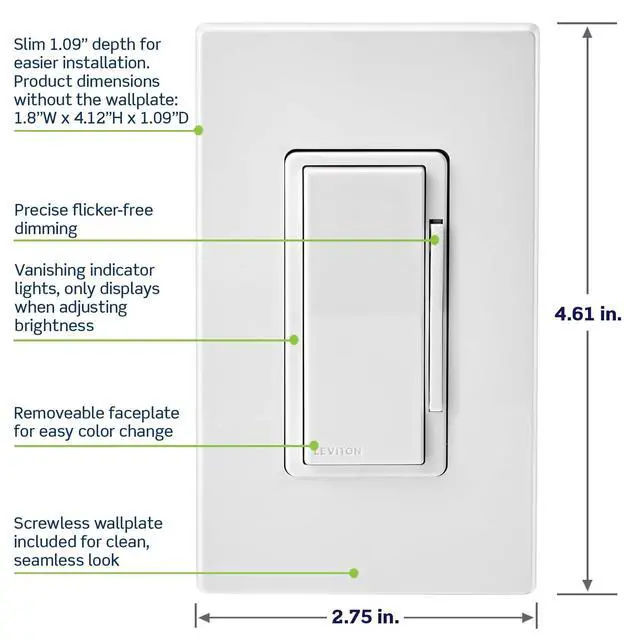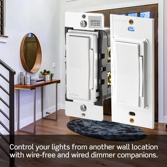 Product DescriptionUpgrade your home with the Leviton Decora Smart Dimmer, designed to deliver fast, reliable, hubfree smart lighting control. This advanced dimmer connects directly to your 2.4 GHz WiFi network and works seamlessly with the My Leviton app, giving you instant control of your lighting from anywhere. Built for the modern smart home, this dimmer supports Matter, allowing local integration with a wide range of smart home platforms. Use Google Assistant, Amazon Alexa, or Apple Siri to adjust brightness, turn lights on/off, or set the perfect ambiance with simple voice commands. Enjoy smooth and reliable lighting control with fullrange dimming, adjustable fade rates, and preset light level options. For expanded control, easily add wirefree 3way or multilocation lighting by pairing with DAWDC Anywhere Dimmer Companions or DAWSC Anywhere Switch Companionsno additional wiring required. Also supports hard-wired 3-way using a DD00R wired dimmer companion. Rated for up to 300W dimmable LED, CFL and Incandescent or 300VA MLV, this dimmer provides reliable performance for a wide range of fixtures (neutral wire required). Create an entire smart home ecosystem by pairing with other Decora Smart WiFi devices to manage lights, fan controls, outlets, and more. Designed to complement any décor, the Decora Smart Dimmer Switch features vanishing LEDs, optional colorchange faceplates, and matching wallplate for a clean, modern look throughout your home. Comes with a 1year limited warranty for added peace of mind.