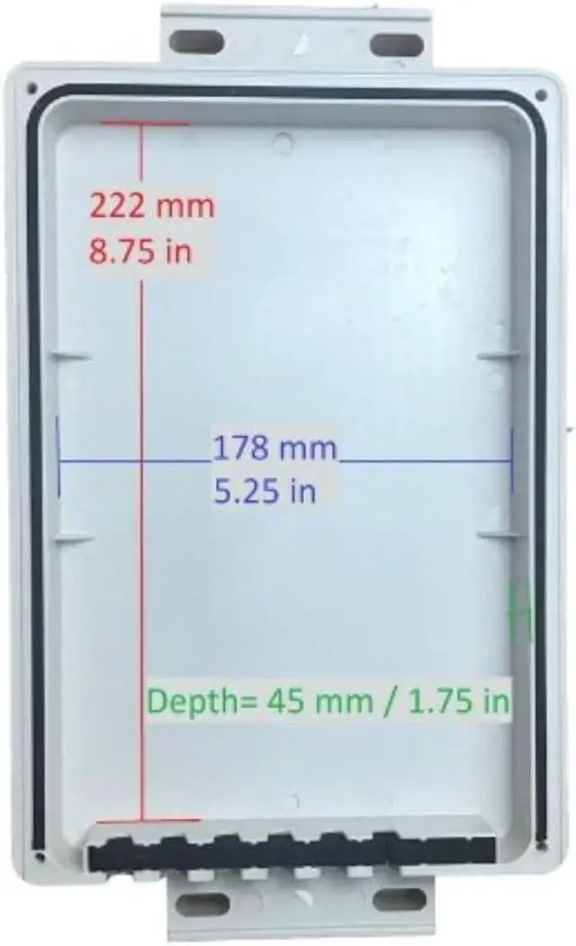 There are 6 cable feedthrus which can accommodate up to 12 CAT5 or CAT6 or power cables. The enclosure is made from UV and impact resistant plastic for long life and worry free operation. The enclosure can be pole or wall mounted.