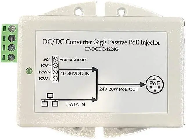 TP-DCDC-1224G - 10-36VDC Input, 24V Passive Gigabit PoE Output, 20W