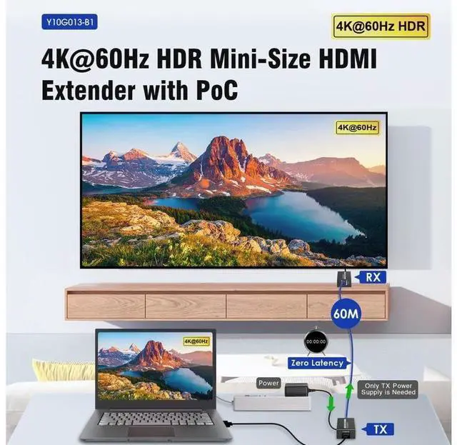 TRUEREACH 4K@60HZ HDMI EXTENDER OVER ETHERNET CABLE - 4K 60HZ UP TO 196FT (60M)