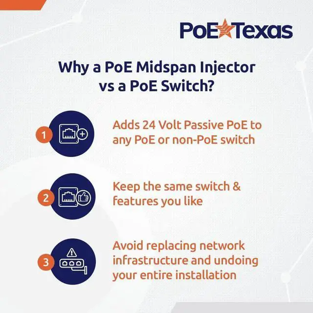 Our PoE injector allows you to connect your PoE-enabled device to the networking hardware with the other features you need. Now you dont have to sacrifice your network performance or pay significantly more just to have the right PoE.