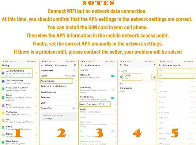 Tips on product usinginsert SIM card then Install the battery (tear off the insulating film). Even if your SIM card is compatible with the product, it is not necessarily plug and play, you may need to disable the PIN code of the SIM card and modify the APN .Enter the router IP address: 192.168.0.1Click NetworkAPNEnable. Modify APN. Make sure the SIM card is activate, Not support roaming service and Virtual SIM Card and IoT SIM Card