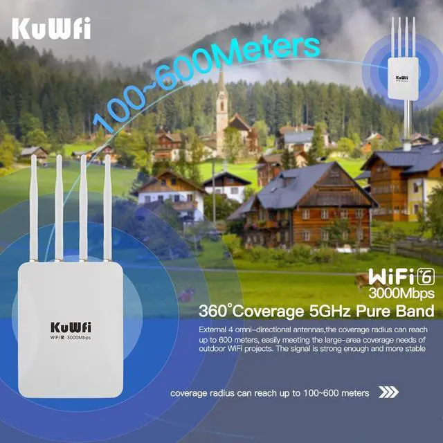 WiFi 6 High-Speed PerformanceEquipped with advanced 802.11ax technology, this dual-band outdoor AP delivers combined speeds of up to 3000Mbps (574Mbps on 2.4GHz + 2402Mbps on 5GHz), ensuring seamless streaming, rapid downloads, and lag-free connectivity for high-density environments.