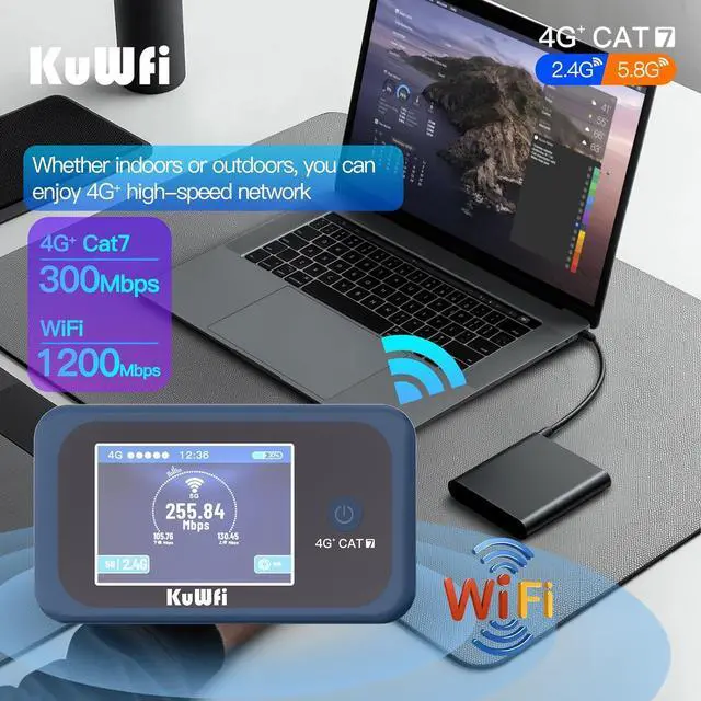OUTDOOR HIGH-SPEED INTERNETCamping wifi hotspot featuring LTE Cat7 technology with 4G wifi speeds up to 300Mbps and Dual-band wifi (2.4GHz and 5.8GHz) Switch freely in 1 second with a button, perfect for video calls, streaming, and remote work in campsites, RVs, or outdoor offices