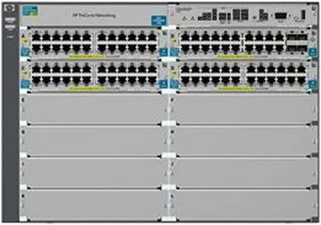 The HP E5400 zl Switch Series consists of advanced intelligent switches in the HP E-Series product-line. The E5400 zl series includes 6-slot and 12-slot chassis and associated zl modules and bundles. The foundation for all of these switches is a purpose-built, programmable ProVision ASIC that allows the most demanding networking features, such as quality of service (QoS) and security, to be implemented in a scalable yet granular fashion. With 10/100, Gigabit Ethernet and 10 Gigabit Ethernet interfaces, choice of PoE+ & Non-PoE, integrated layer 3 features and HP allianceONE Solutions, the E5400 zl switches offer excellent investment protection, flexibility, and scalability, as well as ease of deployment, operation, and maintenance.
