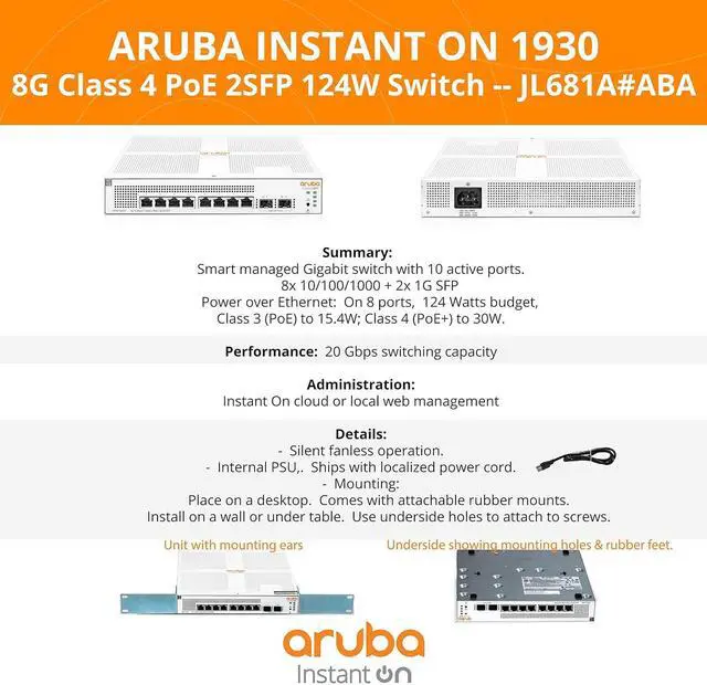 The Aruba Instant On 1930 switch series features easy-to-use, out-of-the-box, plug-and-play deployment.