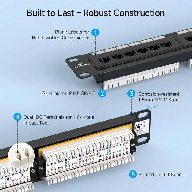 Reliable, High-Quality Connections: The gold-plated contacts ensure a stable, error-free connection. The numbered ports and color-coded T568A/T568B wiring diagrams simplify installation, allowing you to quickly and accurately wire your network for seamless performance.