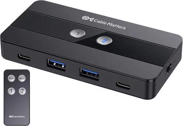 To pair a new remote, connect the switch to the computer, then press and hold the Pair button for 5 seconds until the LED stops flashing.