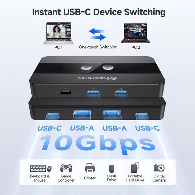 Both the USB-C and USB-A ports on this switch support high-speed data transfer of up to 10Gbps.