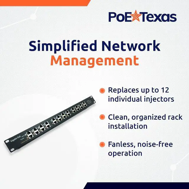 This passive "always on" rack-mountable injector features a fanless design for silent operation and zero power draw when devices aren't connected. With bright LED status indicators showing power levels for each port group, you'll always know the status of your connected devices.