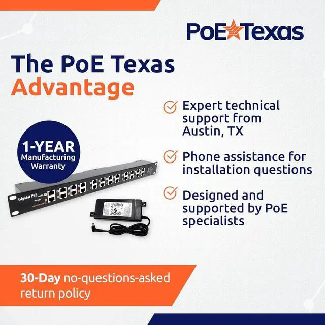 Every unit includes a 1-year manufacturers coverage with direct access to PoE specialists for installation advice and troubleshooting assistance.