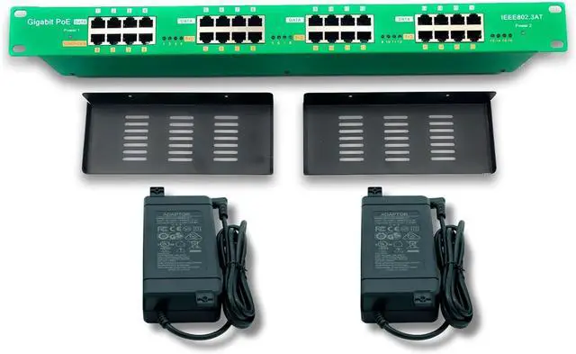Power with Protection: Includes two 56 volt 120 watt supplies (240W total) and power supply mounting trays for a cleaner installation. This PoE injector allows you to distribute power across multiple devices with self-resetting fuses per port for continuous operation assurance and built-in overload protection.